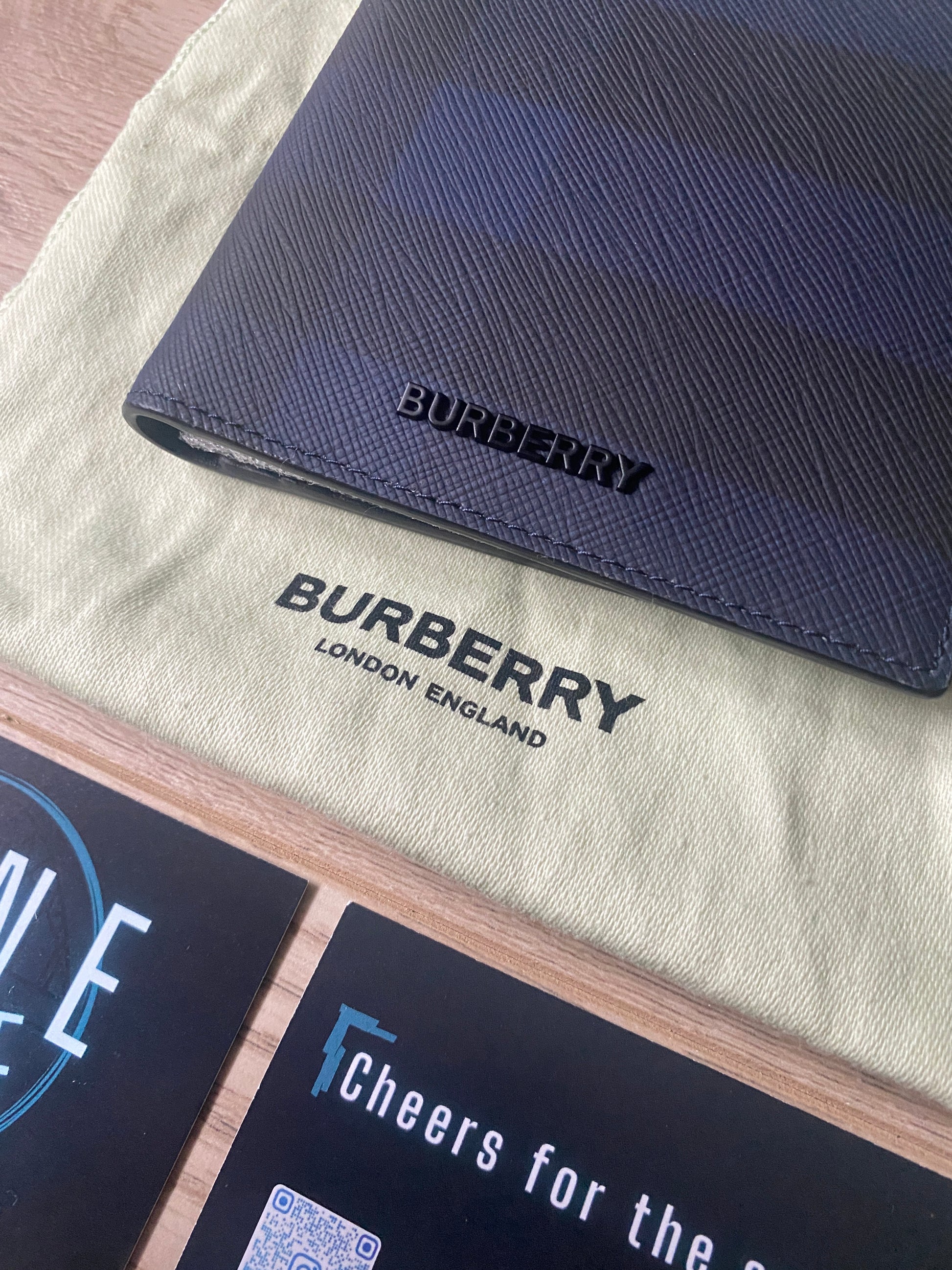Burberry Check Print Leather Unisex Card/Coin/Note Holder Navy/Black Bi-Fold Wallet