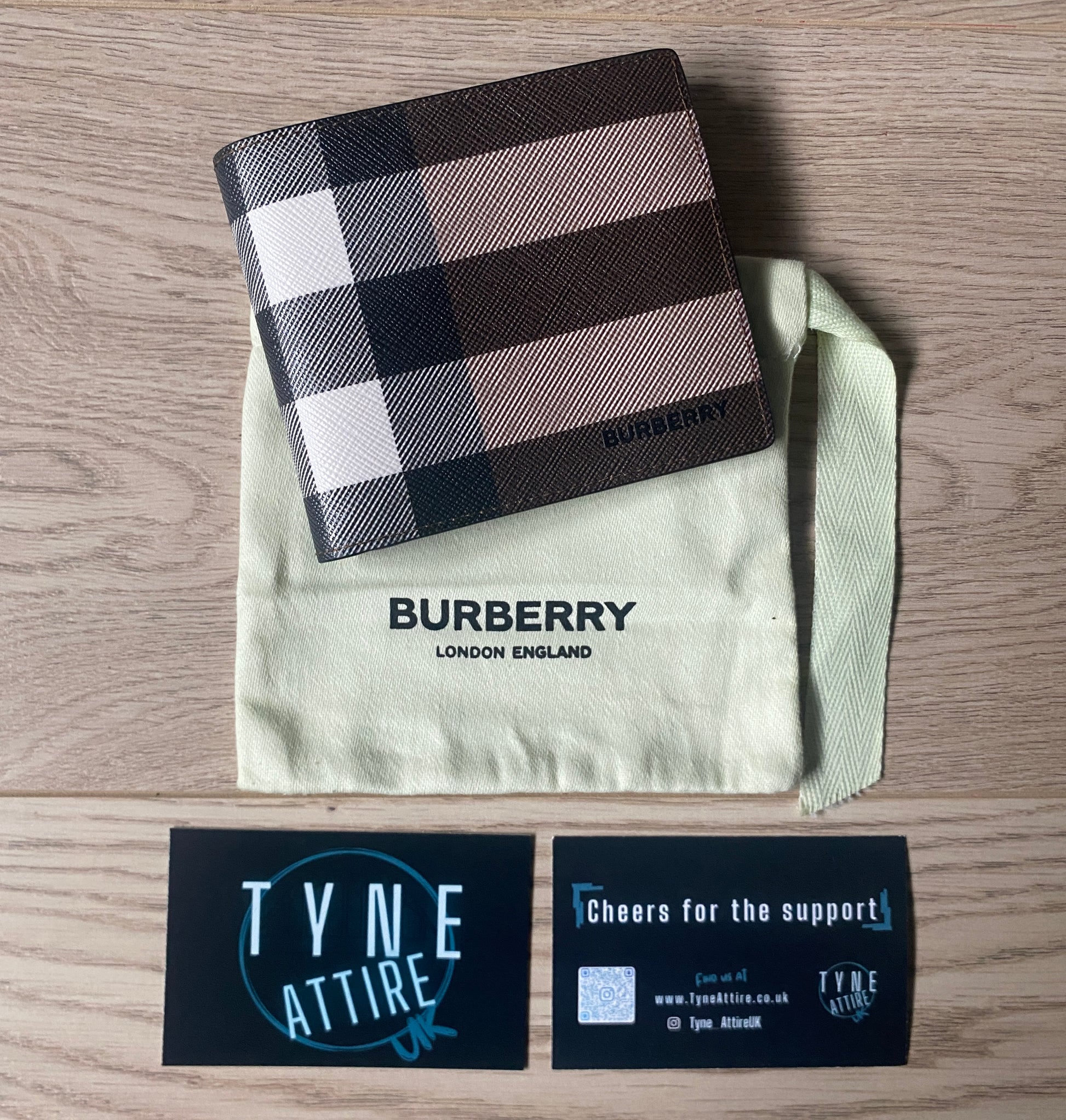 Burberry Check Print Leather Unisex Card/Note Holder Brown Birch Bi-Fold Wallet