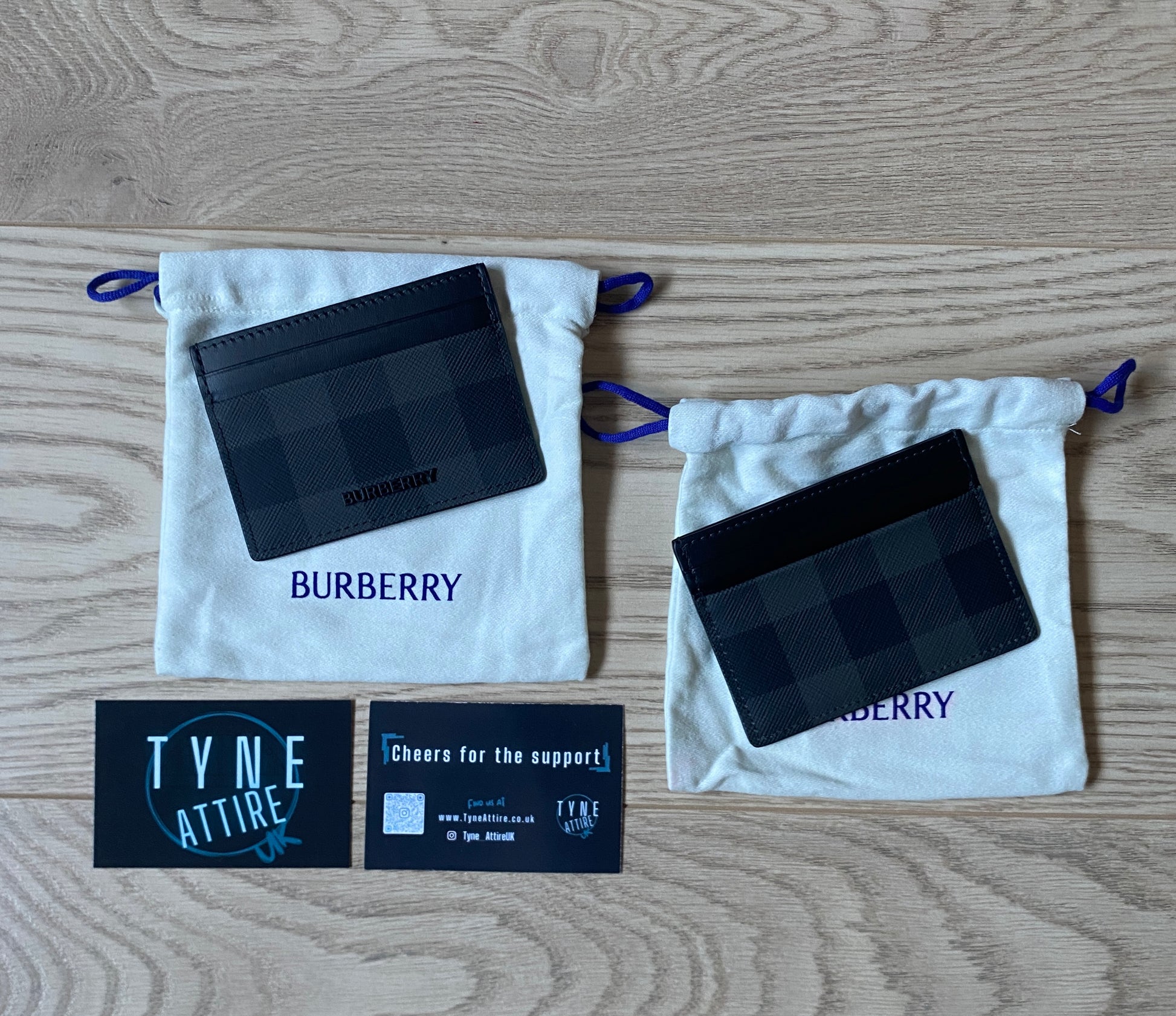 Burberry Check Print Leather Unisex Charcoal Grey/Black Card Holder