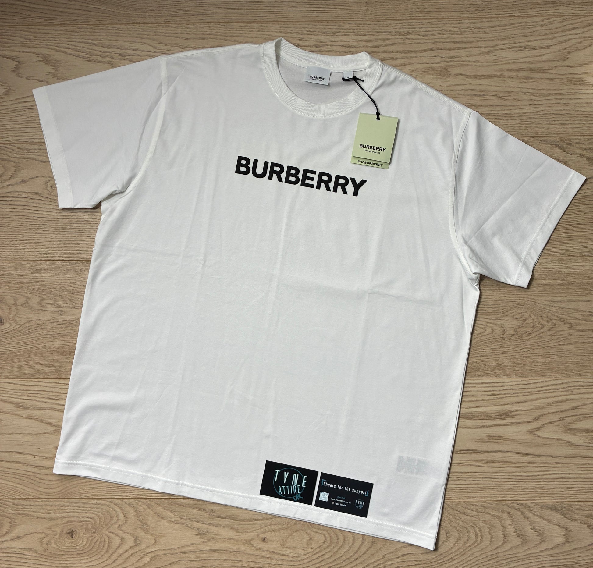 Burberry Harriston Spellout Raised Chest Logo Cotton White Oversized Cotton Crewneck T-Shirt