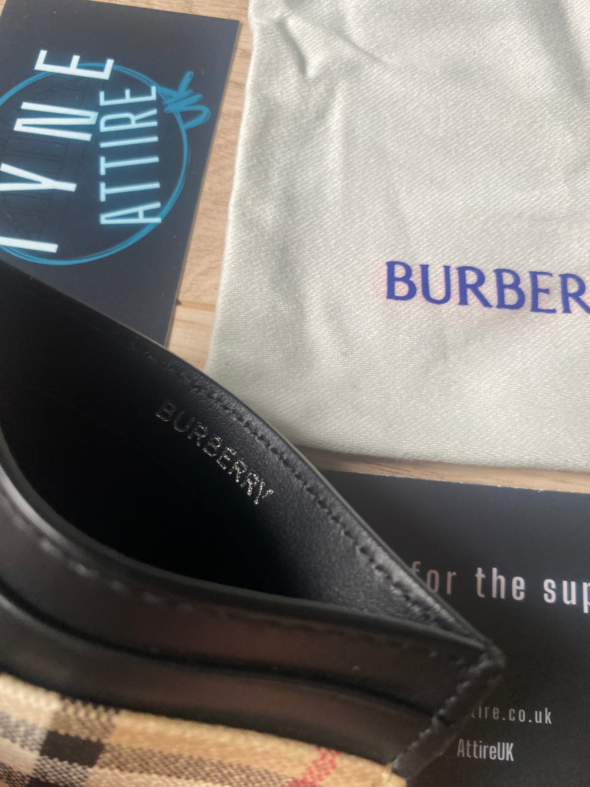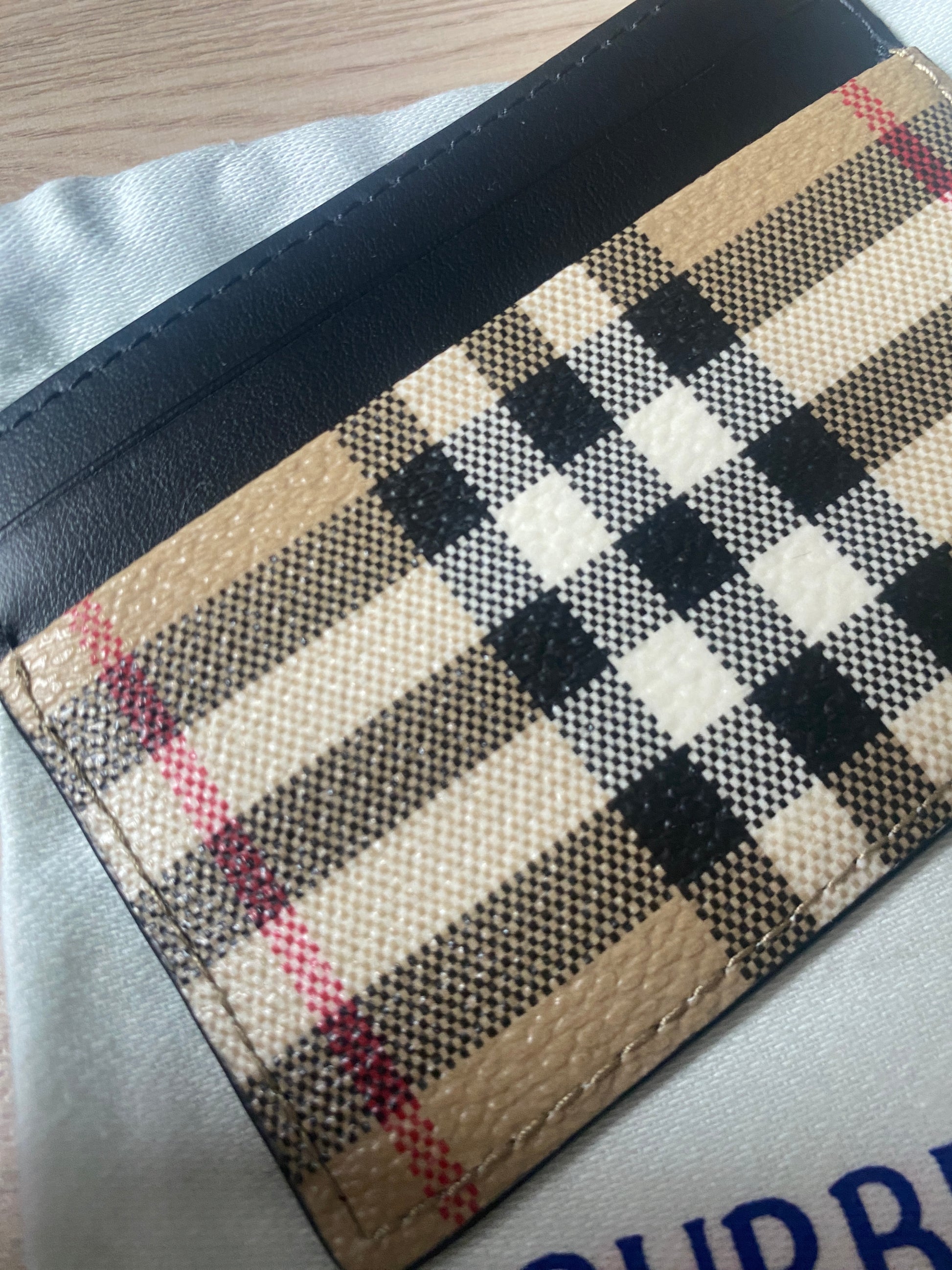 Burberry Vintage Check Print Leather Unisex Archive Beige/Black Card Holder