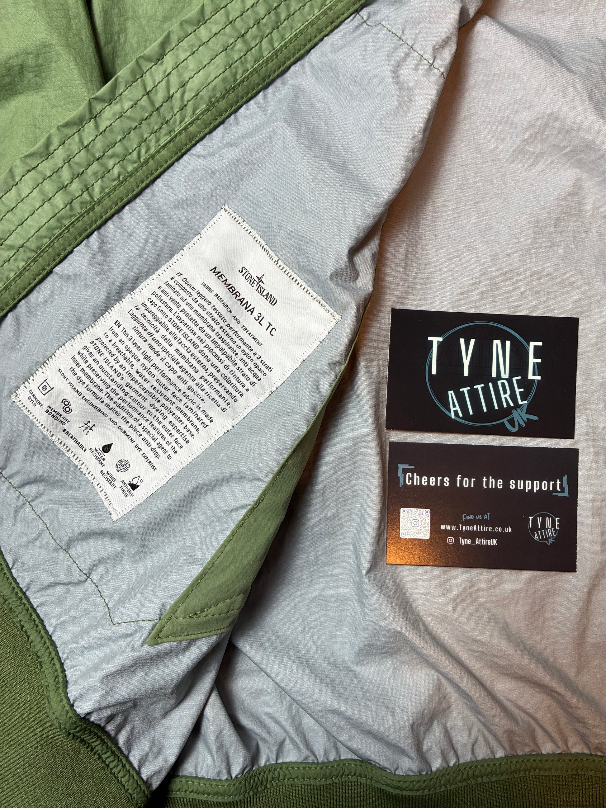 Stone Island 40723 Membrana 3L-TC Garment Dyed Sage Green Hooded Windbreaker Jacket