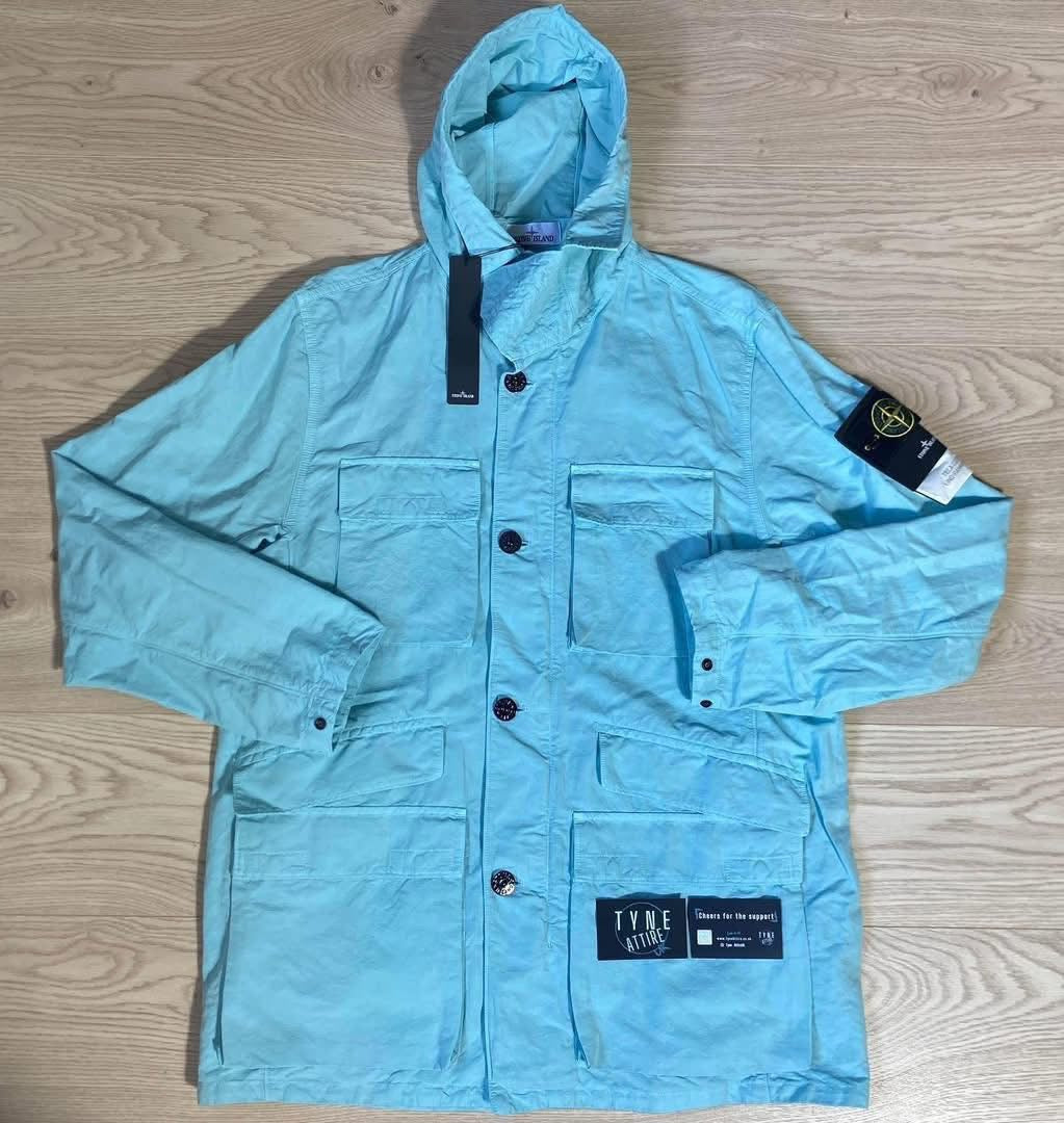 Stone Island 42306 Tela Cotone Lino Fiammato-TC Aqua Blue Hooded Field Jacket