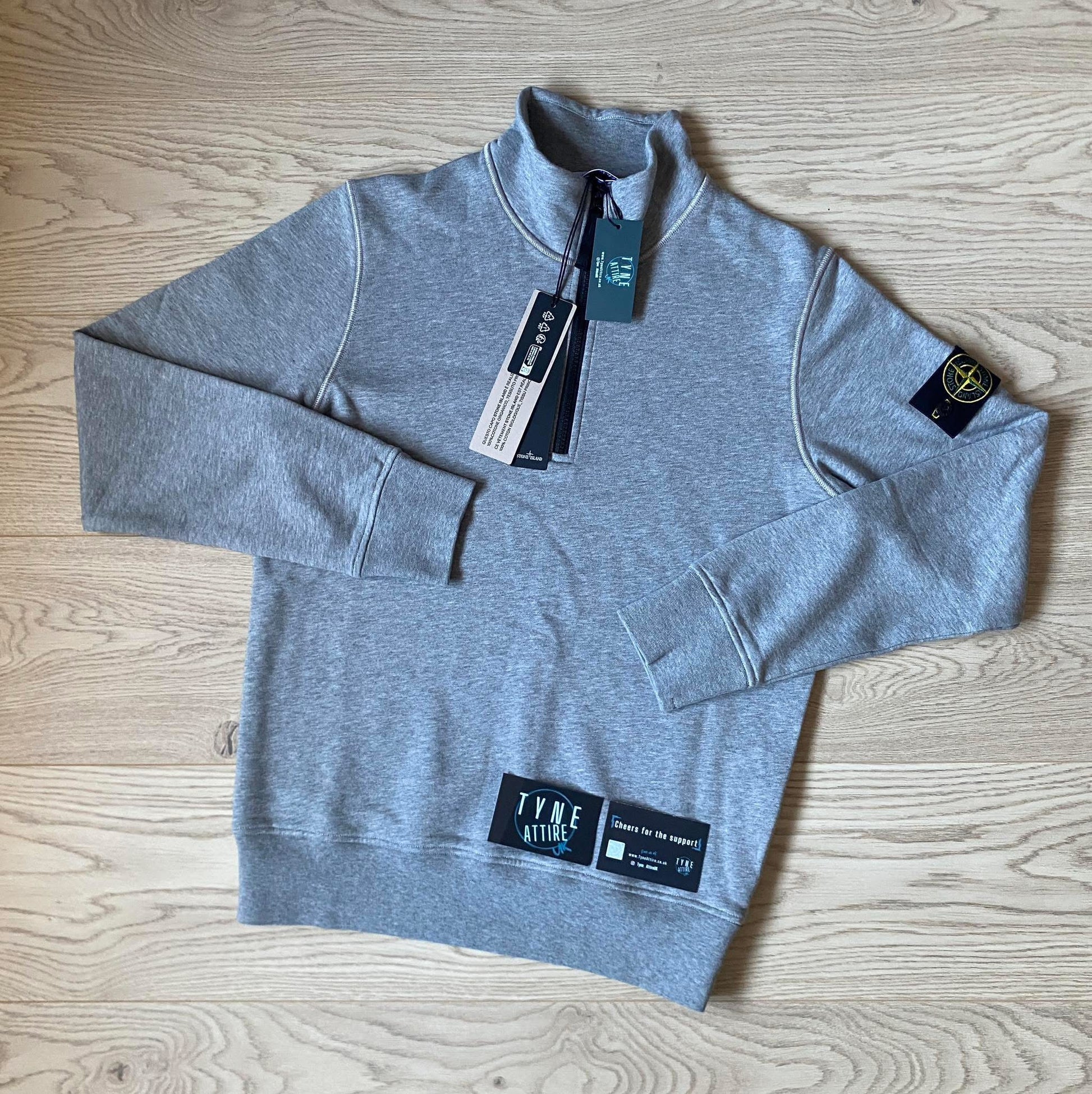 Stone Island 6100619 Cotton Fleece Garment Dyed 1/2 Zip Dust Grey Melange Sweater